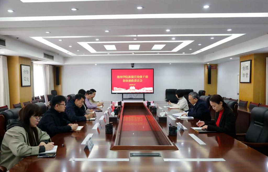 4月10日上午,学校召开新提任处级干部集体廉政谈话会。学校党委委员、纪委书记、省监委驻德州学院监察专员崔新乐出席会议并对新提任处级干部作廉政谈话。纪委机关相关人员及新提任处级干部参加会议。